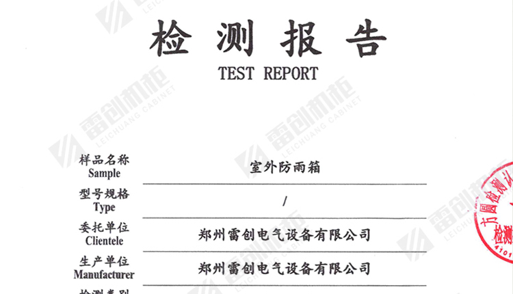 雷創電氣:室外防雨箱外殼防護等級(IP65)檢測報告