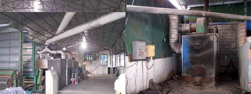 適合于椰棕制品的烘干,溫度高,出風可達150-220度,烘干速度快,每分鐘可干燥4-5米,啟停方便,熱能浪費少,無掛膠之憂,烘干效果好。